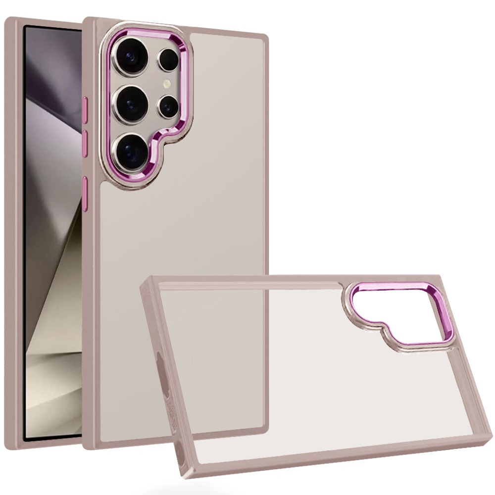 For Samsung s25 Ultra Polished Oil Thick Acrylic Metal Button Hybrid Case Cover - Beige