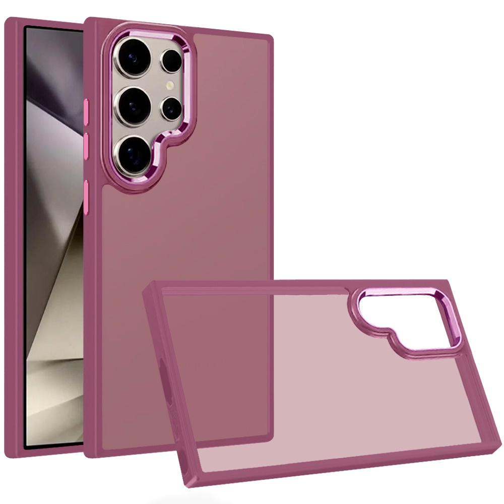 For Samsung s25 Ultra Polished Oil Thick Acrylic Metal Button Hybrid Case Cover - Burgundy