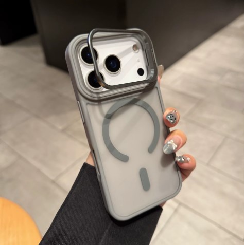 FROSTED MAGSAFE LENS-STAND CASE (WITH RETAIL BOX) FOR IPHONE 14 PRO MAX | GRAY