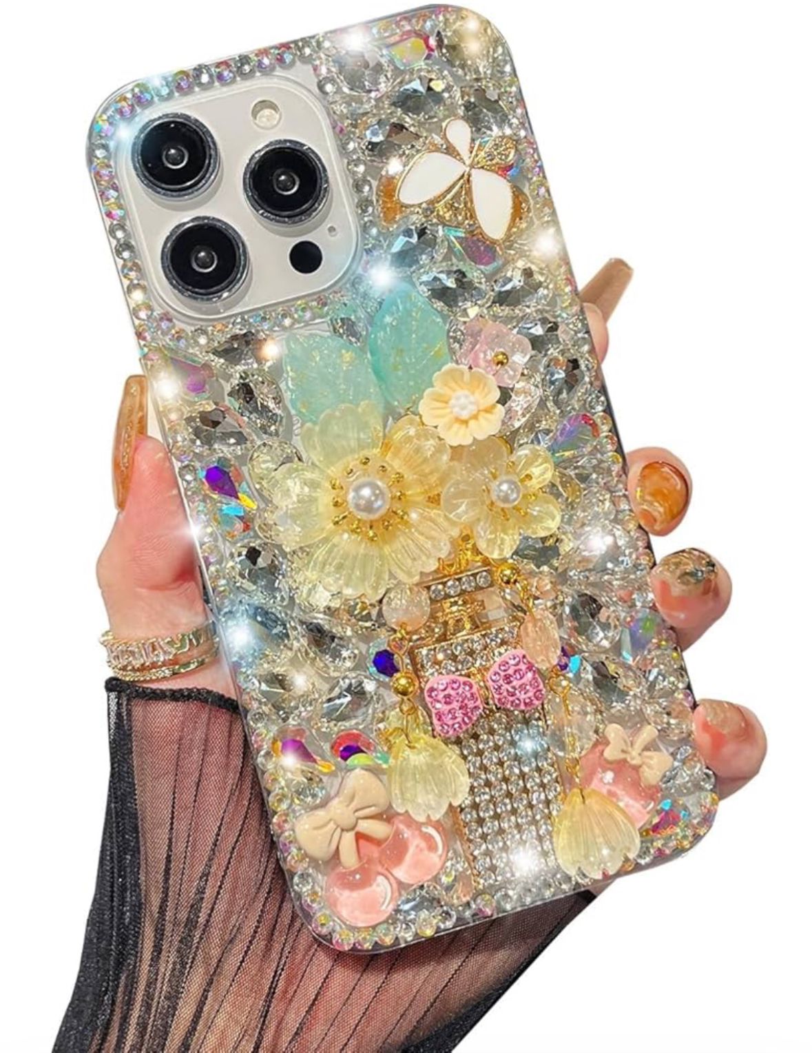 FRUIT FLOWER DIAMOND CASE FOR IPHONE 15 PRO MAX (GREEN)