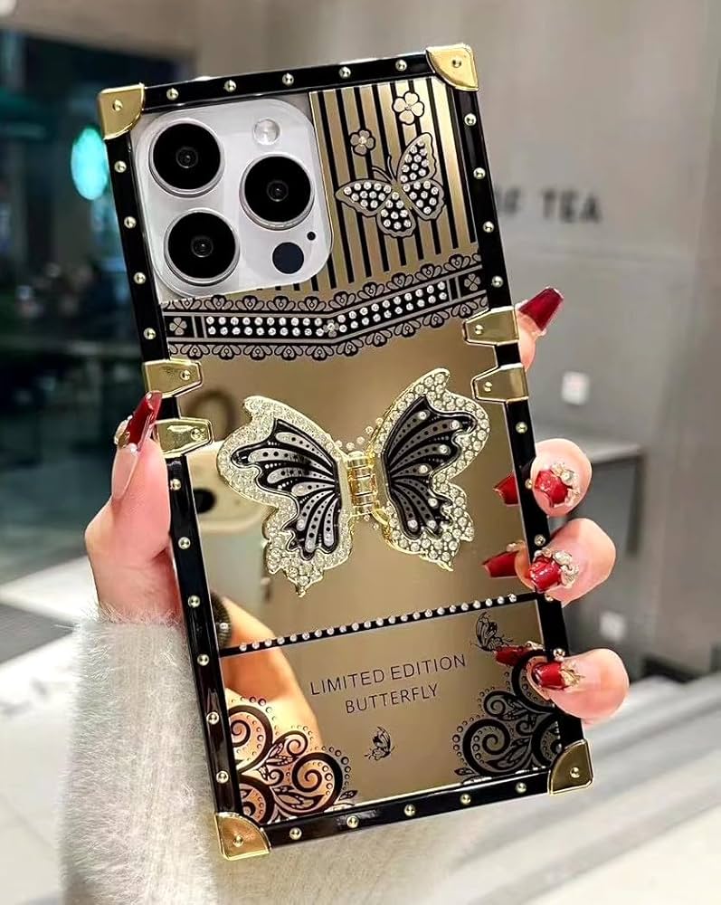 Samsung S26 Ultra Golden Butterfly Bracket Square Case Black