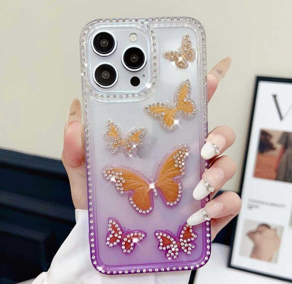 GRADUAL BUTTERFLY DIAMOND CASE (WITH RETAIL BOX) FOR IPHONE 13/14/15 | PURPLE