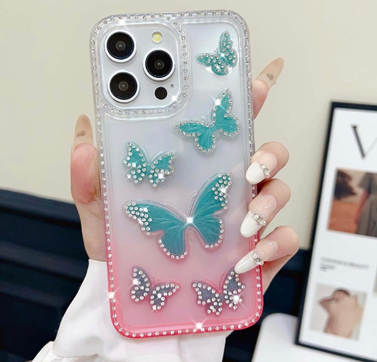 GRADUAL BUTTERFLY DIAMOND CASE (WITH RETAIL BOX) FOR IPHONE 16 PRO MAX | PEACH