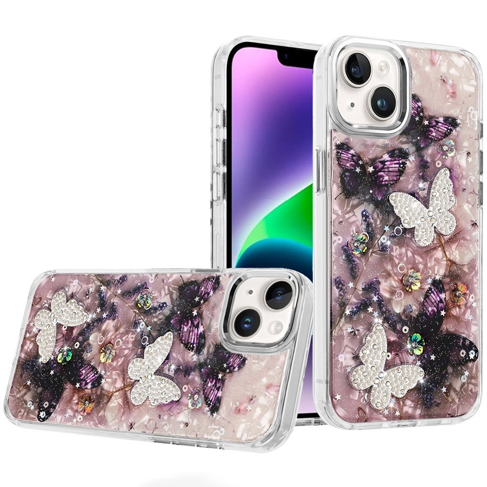 iPhone 15 Epoxy Glitter Butterfly Ornaments Design HQ Metal Buttons Hybrid - 5