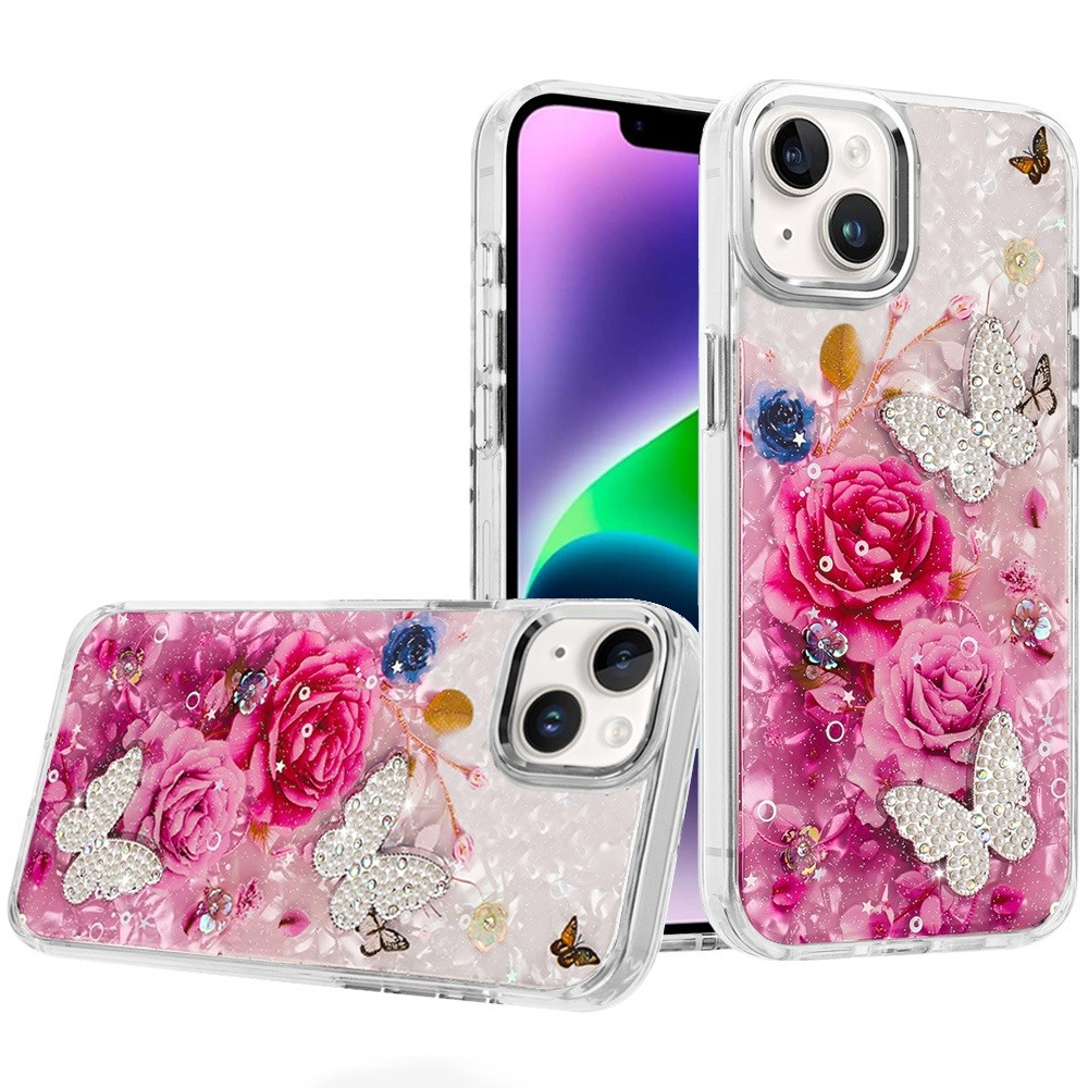 iPhone 15 Epoxy Glitter Butterfly Ornaments Design HQ Metal Buttons Hybrid - 6