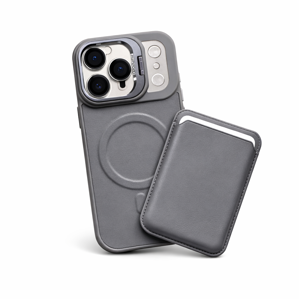iPhone 17 (Gray) Leather MagSafe Card Pocket Case