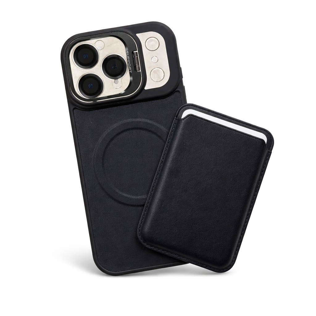 iPhone 17 Pro (Black) Leather MagSafe Card Pocket Case