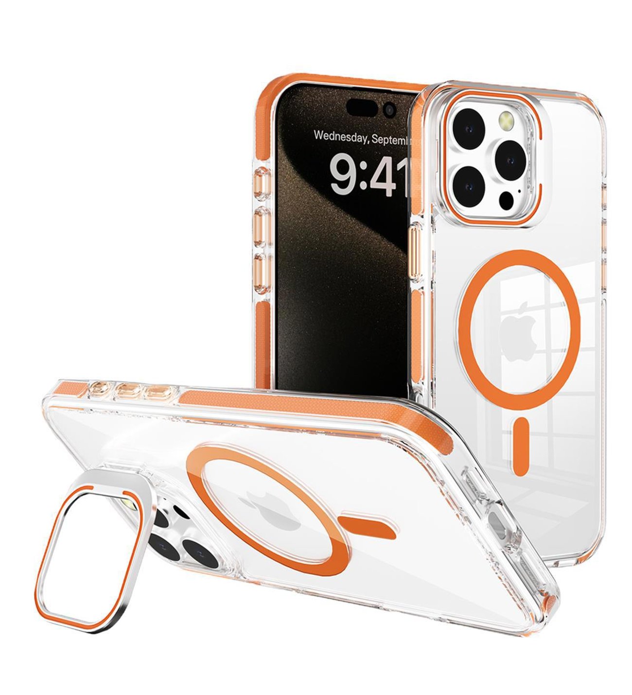 iPhone 17 Pro Camera Metallic Stand [Magnetic Circle] Transparent Colorful Matching Edged Tough Hybrid Case - Cosmic Orange