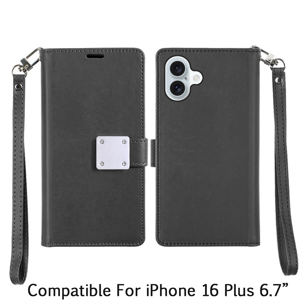 For iPhone 16 Plus 6.7 inch Wallet ID Card Holder Case Cover - Black