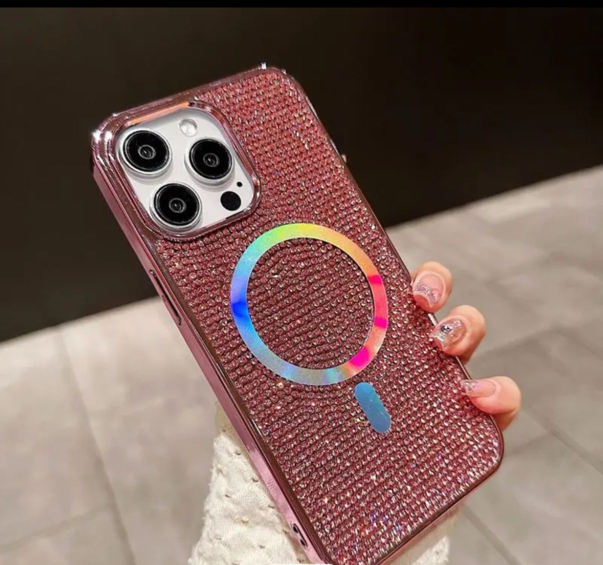 CRUSHED DIAMOND CASE WITH MAGSAFE FOR IPHONE 16 PLUS PINK