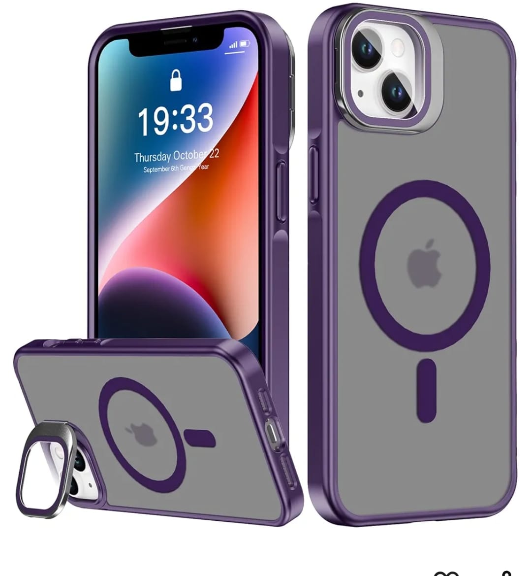 J3 FRAME MAGNETIC CASE WITH CAMERA GLASS STAND FOR IPHONE 16 PLUS (PURPLE)