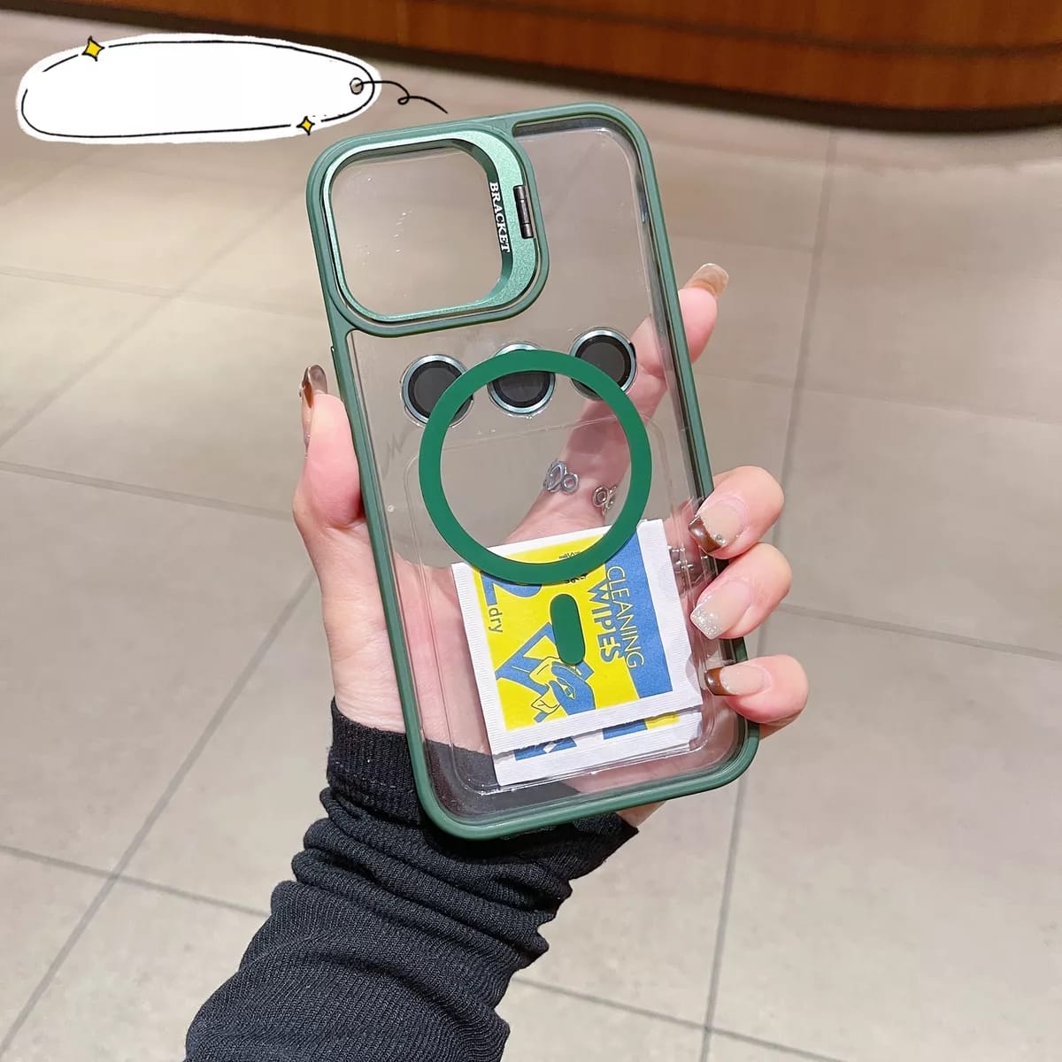 JINDUN LEN BRACKET MAGNETIC CASE FOR IPHONE 14 PLUS/15 PLUS GREEN WITH RETAIL BOX PACKING.