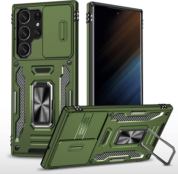 Samsung S25 Plus/S24 Plus Kejiang Case With Camera Cover & Metal Ring Olive Green