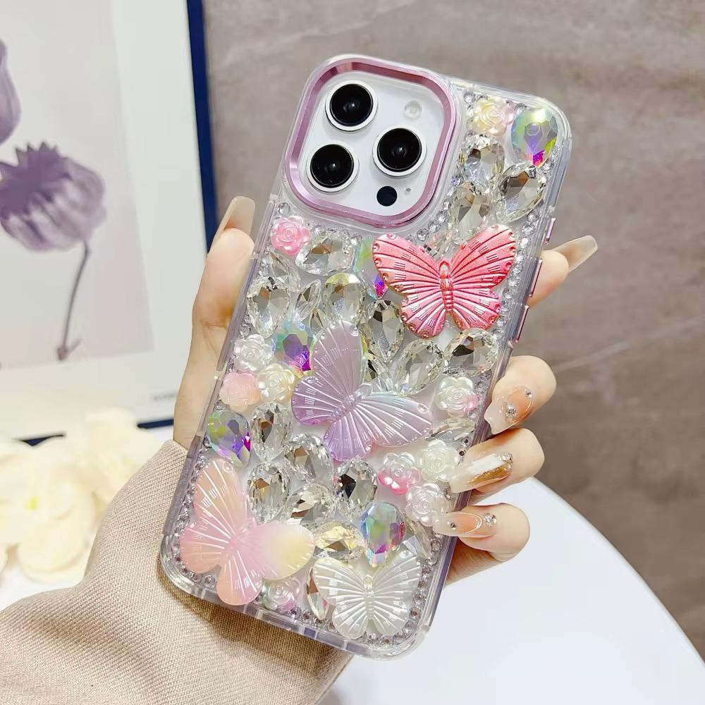 LAVISHED FLORAL BUTTERFLY BLING STONES HYBRID CASE FOR SAMSUNG S24 ULTRA | ROSE RED
