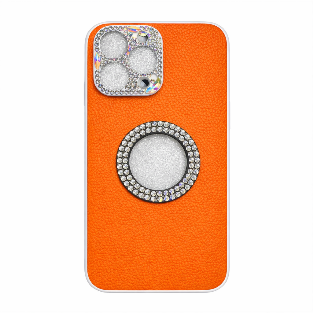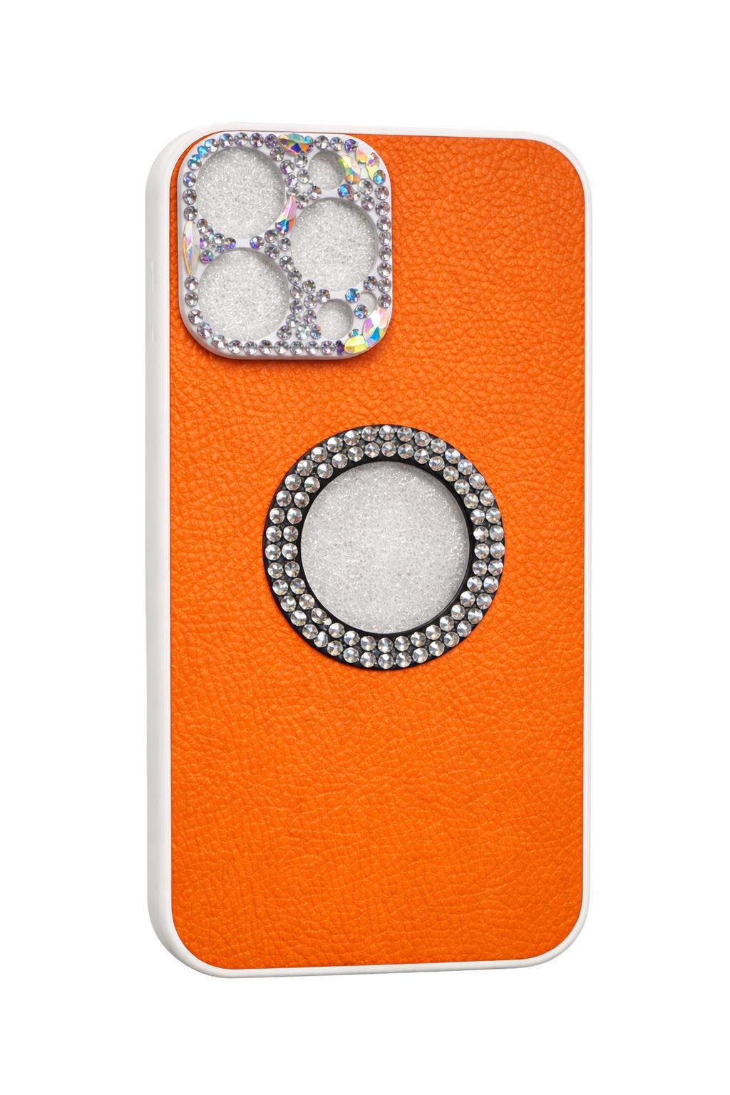 LEATHERBACK CASE WITH DIAMONDS BEZEL FOR 13 PRO MAX | ORANGE