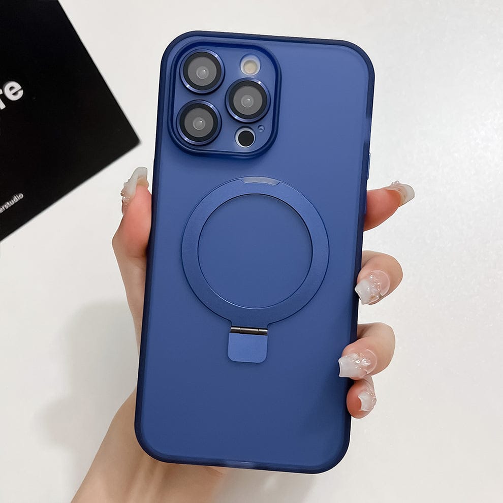 MAGNETIC STAND MAGSAFE WITH CAMERA LENS CASE FOR IPHONE 14 PRO BLUE