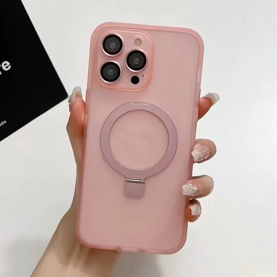 MAGNETIC STAND MAGSAFE WITH CAMERA LENS CASE FOR IPHONE 14 PRO MAX PINK