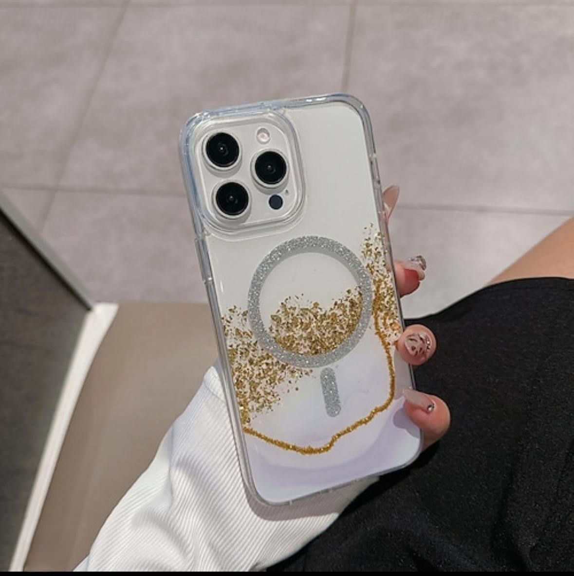 MARBLE GLITTER MAGNETIC CASE (WITH RETAIL BOX) FOR IPHONE 13/14/15 | SILVER