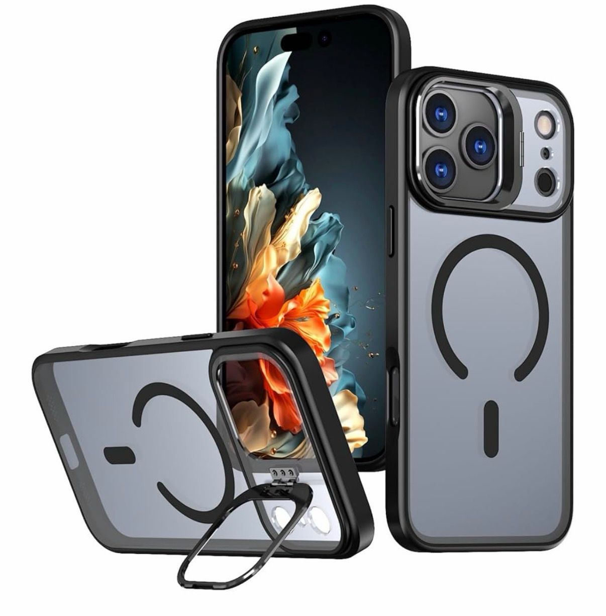 MATTE MAGNETIC CASE WITH CAMERA KICKSTAND FOR IPHONE 13/14/15 | BLACK
