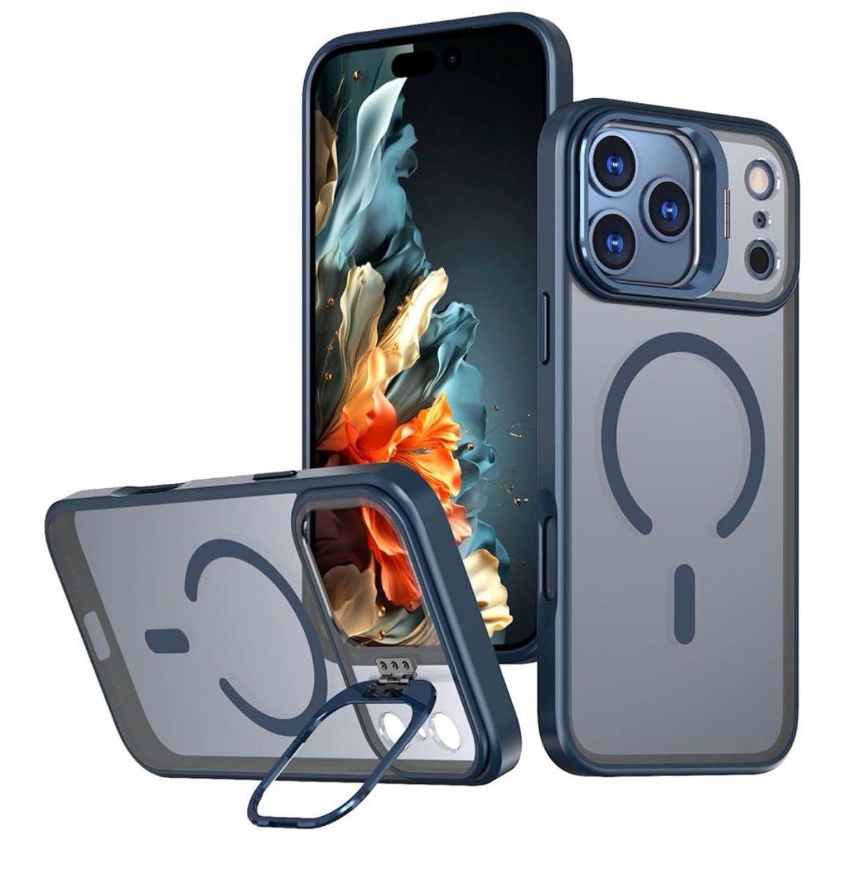 MATTE MAGNETIC CASE WITH CAMERA KICKSTAND FOR IPHONE 13/14/15 | BLUE