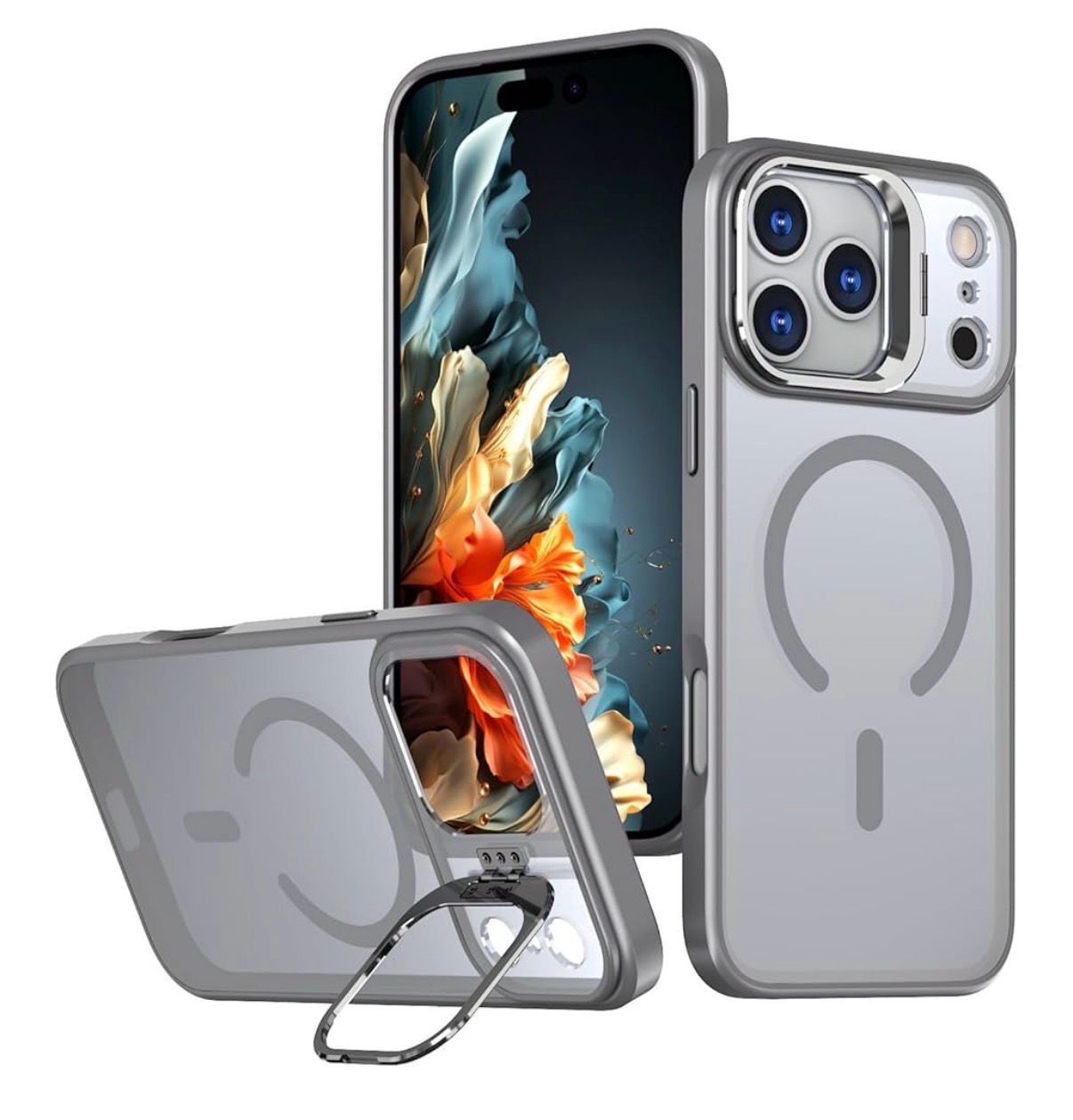 MATTE MAGNETIC CASE WITH CAMERA KICKSTAND FOR IPHONE 13/14/15 | GRAY