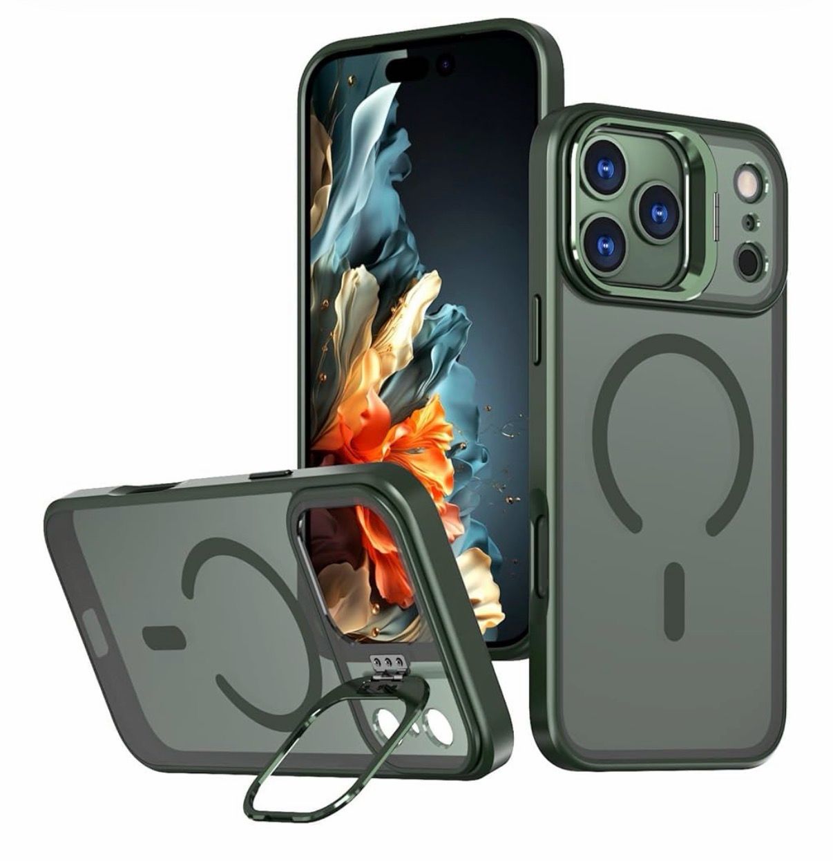 MATTE MAGNETIC CASE WITH CAMERA KICKSTAND FOR IPHONE 16 PRO MAX | DARK GREEN