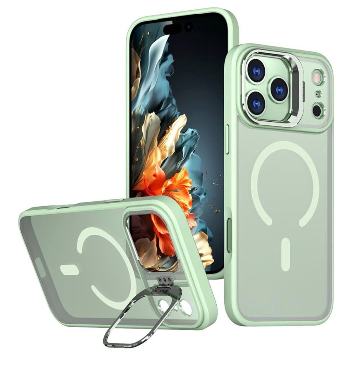 MATTE MAGNETIC CASE WITH CAMERA KICKSTAND FOR IPHONE 16 PRO MAX | LIGHT GREEN