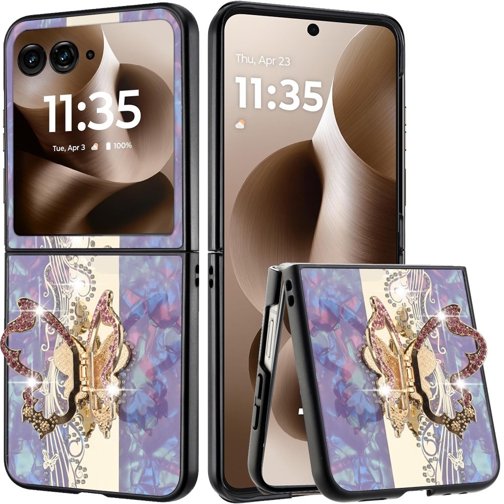 Motorola Razr+ Plus 2024 SPLENDID Diamond Glitter Ornaments Engraving Case Cover - Enchanted Butterfly Purple