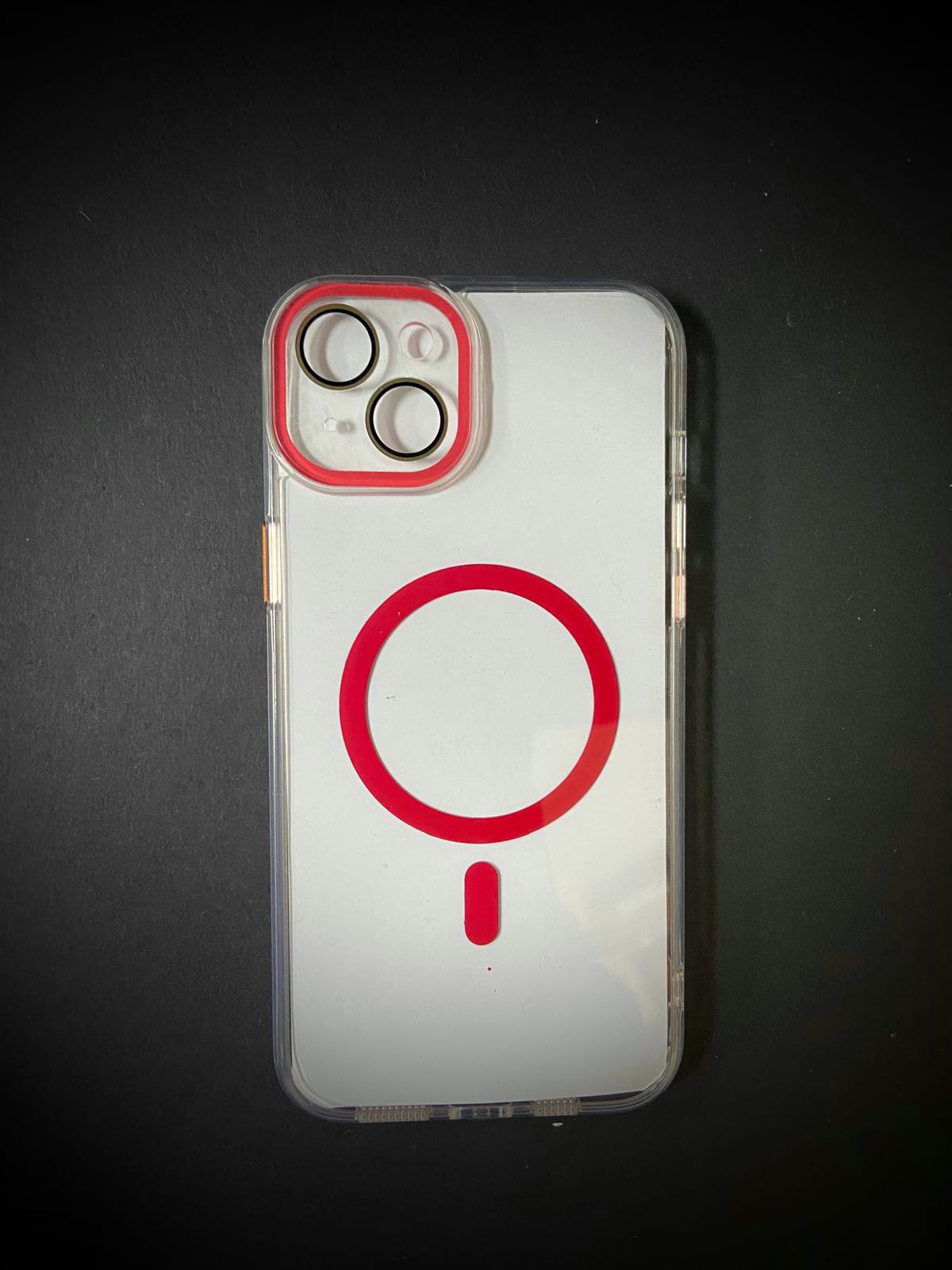 PLASTIC SKY MAGNETIC CASE WITH CAMERA LENS FOR IPHONE13/14/15 RED WITH RETAIL BOX PACKING.