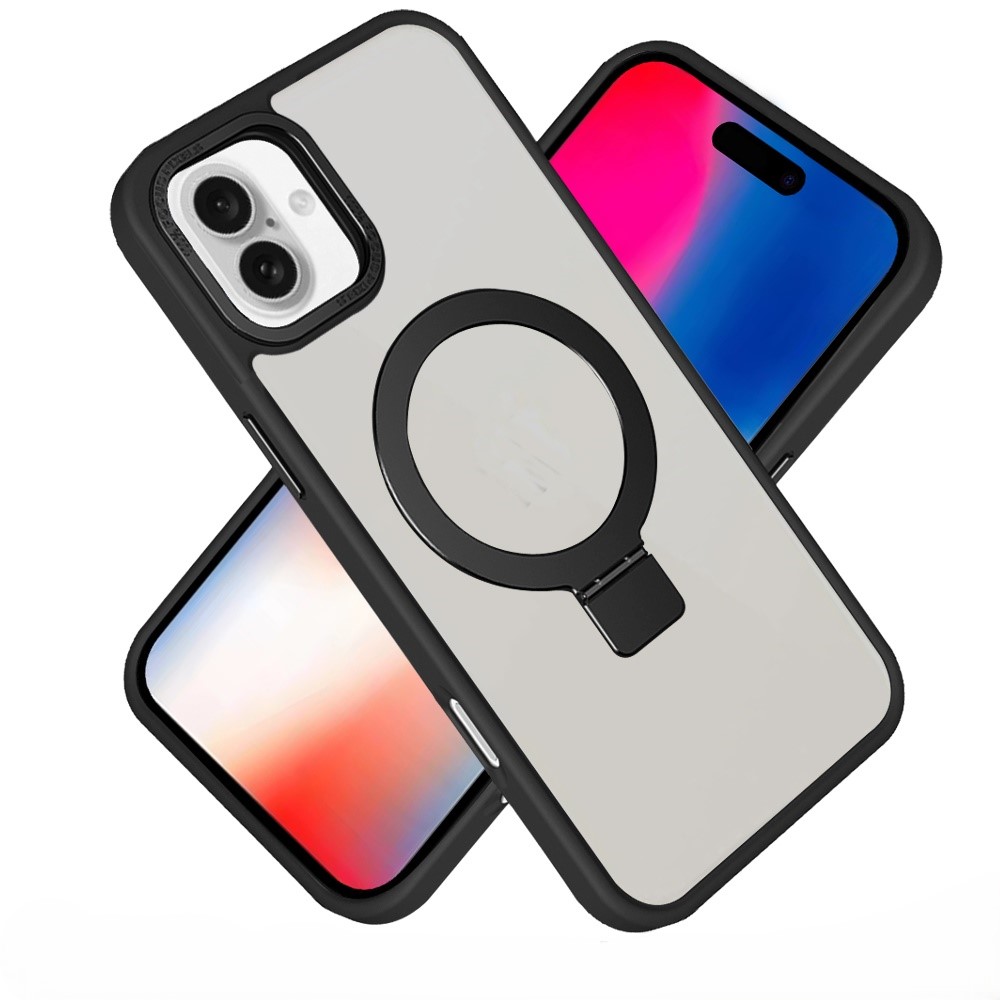 [PolyBag] iPhone 16 Plus 6.7 inch Metal Chrome Kickstand [Magnetic Circle] Shockproof Matching Camera Hybrid - Black