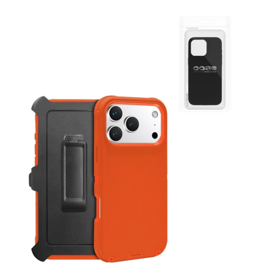 iPhone 14 Plus Pro Defender Case With Clip | Orange (Polybag Packing)