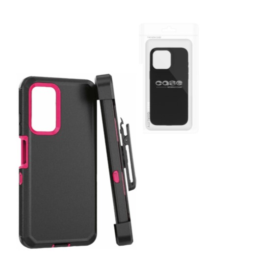 PRO DEFENDER CASE WITH CLIP FOR IPHONE 15 PRO | BLACK-PINK (POLYBAG PACKING)