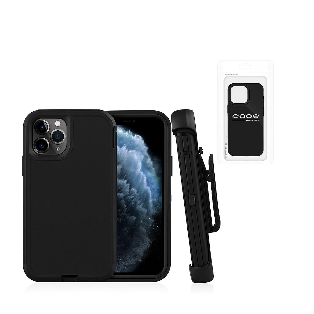 PRO DEFENDER CASE WITH CLIP FOR IPHONE 15 PRO MAX | BLACK (POLYBAG PACKING)