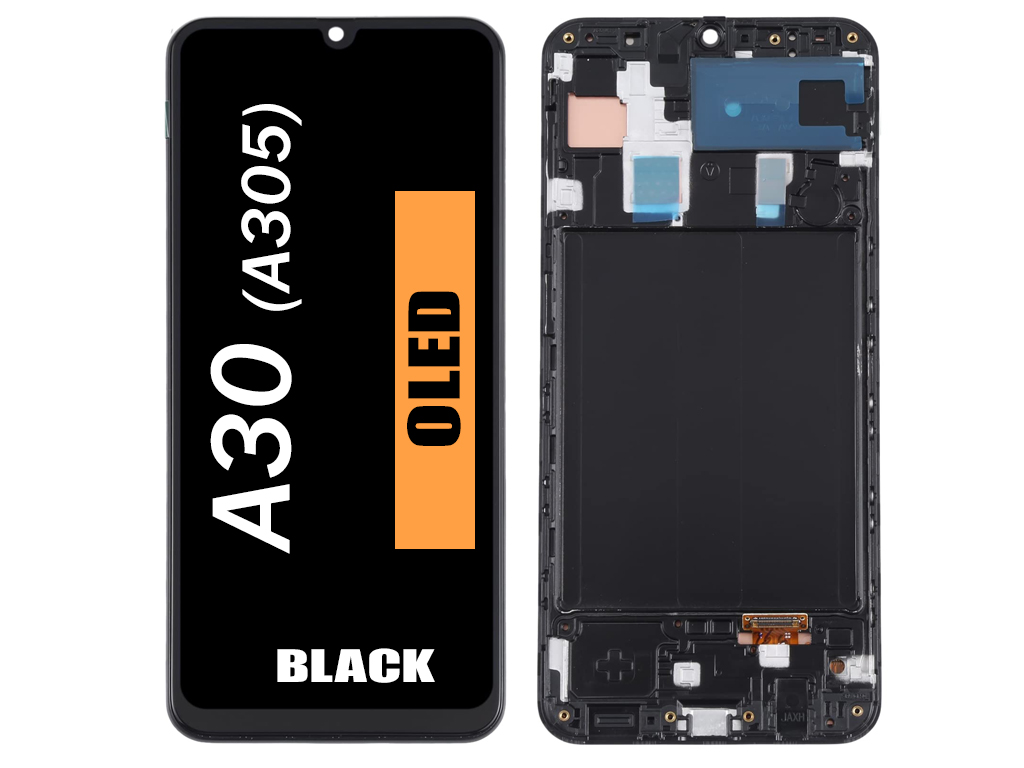 SAMSUNG A30 LCD WITH FRAME BLACK A305 OLED QUALITY