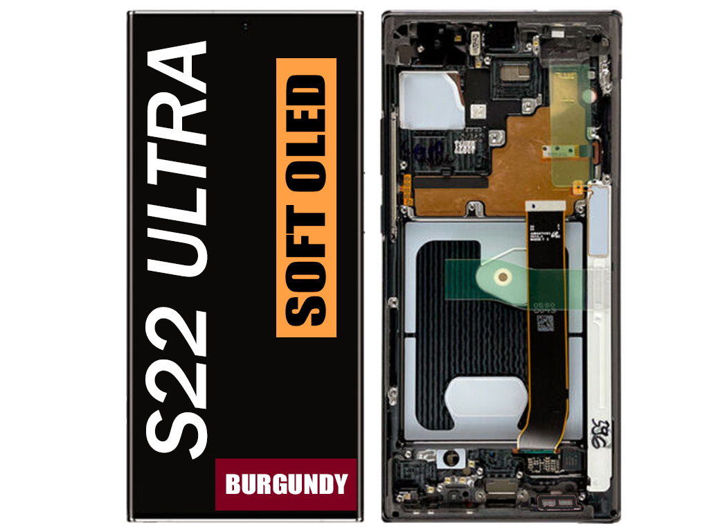 SAMSUNG S22 ULTRA LCD OLED QUALITY WITH FRAME BURGUNDY (SOFT OLED / 120 HZ)