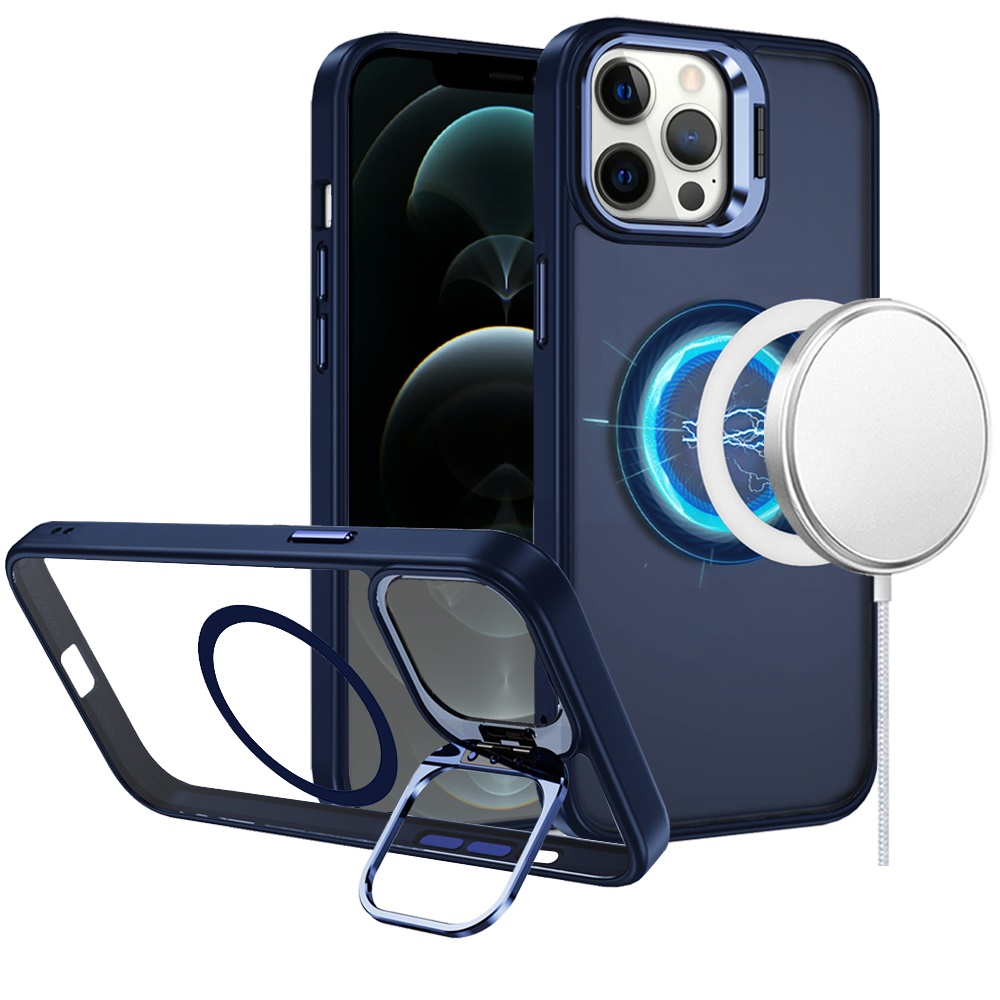 Samsung s25 Plus/s24 Plus Fearless Tough HQ Metallic Hybrid with Camera Ring Stand [Magnetic Circle] Case - Navy Blue