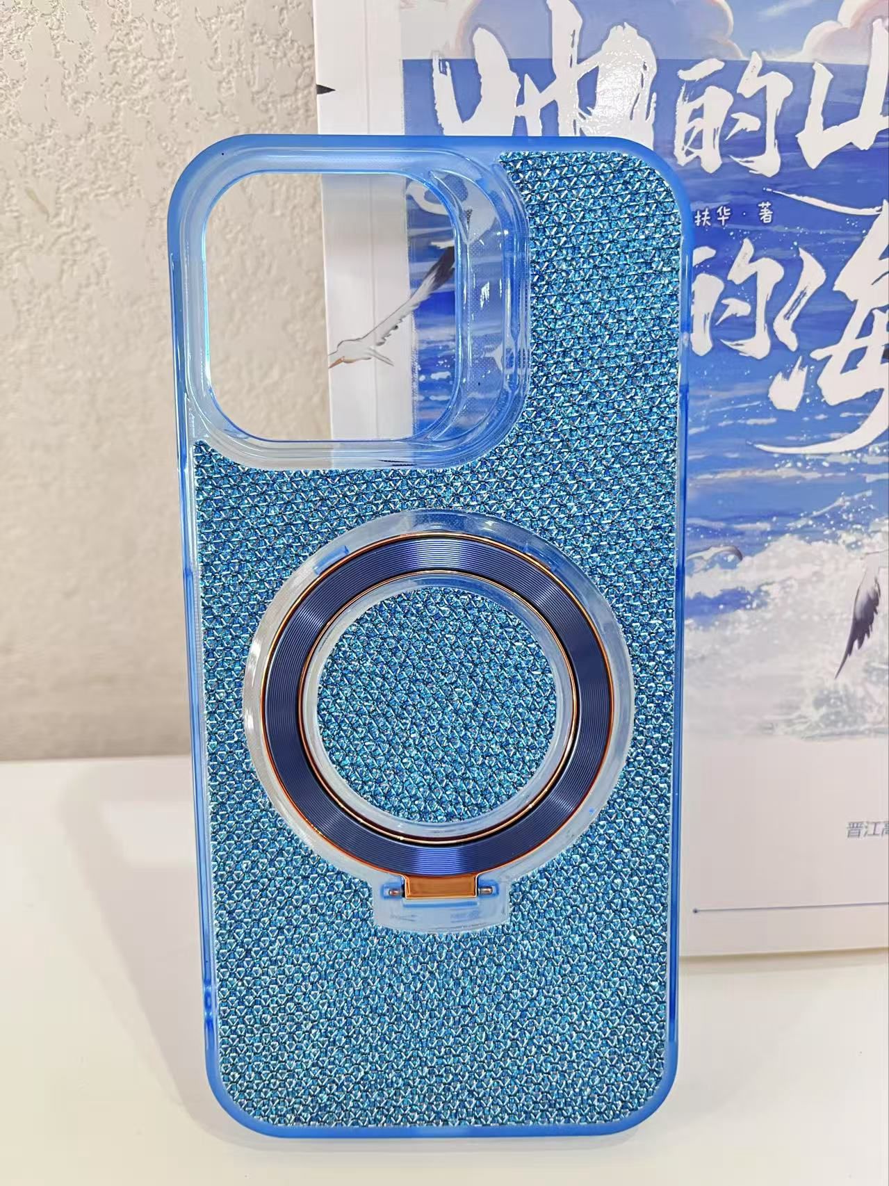 SHINY TPU MAGNETIC CASE WITH KICKSTAND FOR IPHONE 14 PLUS/15 PLUS BLUE