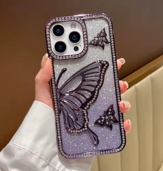 SIDE BUTTERFLY DIAMOND CASE (WITH RETAIL BOX) FOR IPHONE 13/14/15 | PURPLE