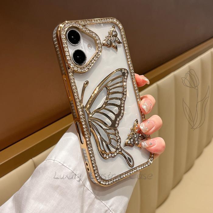 SIDE BUTTERFLY DIAMOND CASE (WITH RETAIL BOX) FOR IPHONE 17 | GOLD