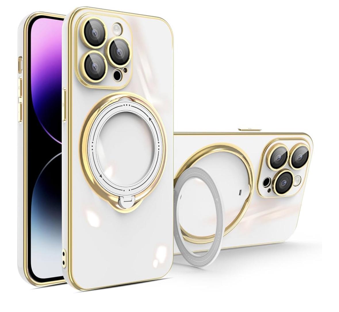 SOLID COLOR MAGNETIC KICKSTAND CASE (WITH RETAIL BOX) FOR IPHONE 15 PLUS | WHITE
