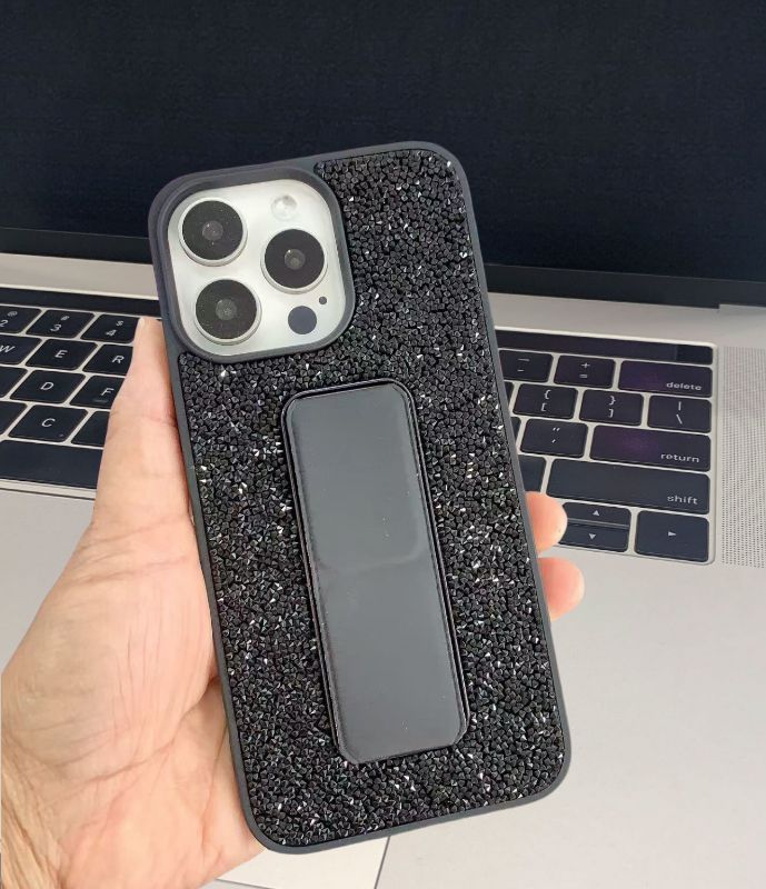 SUIZUAN CRUSHED DIAMOND HOLDER CASE WITH ATL PACKING FOR IPHONE 15 PRO MAX BLACK