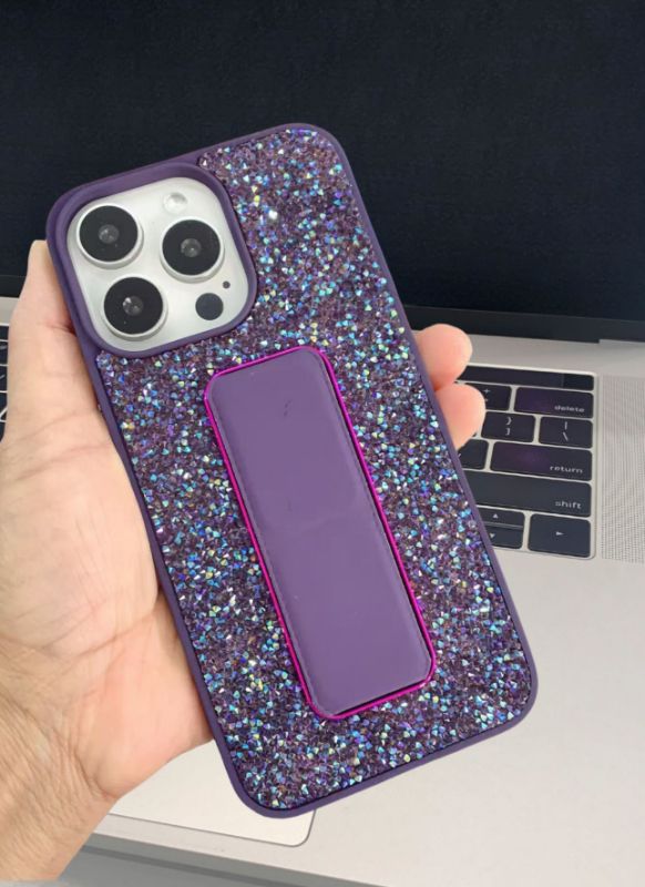 SUIZUAN CRUSHED DIAMOND HOLDER CASE WITH ATL PACKING FOR IPHONE 15 PRO MAX DARK PURPLE