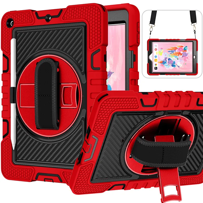 TONGJIE B STRAP CASE WITH STAND FOR IPAD 7/8/9 10.2" | RED-BLACK