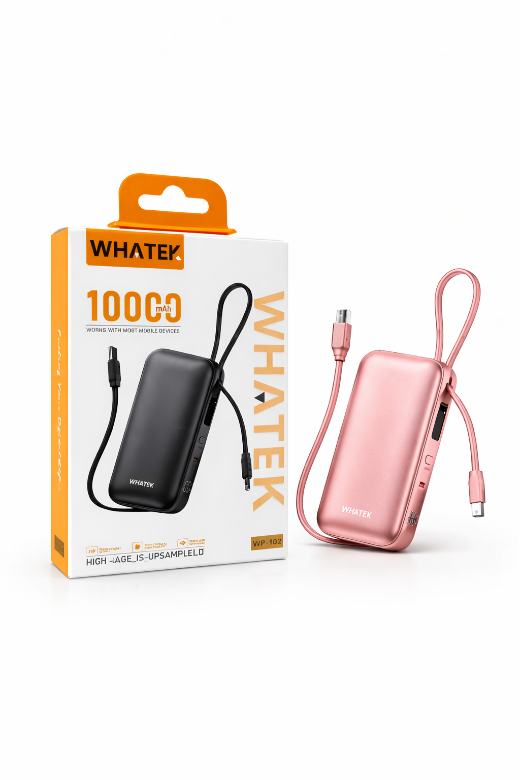WP-102 Whatek 10000mAh Power Bank With Cable (Portable/Carriable) | Rose Gold