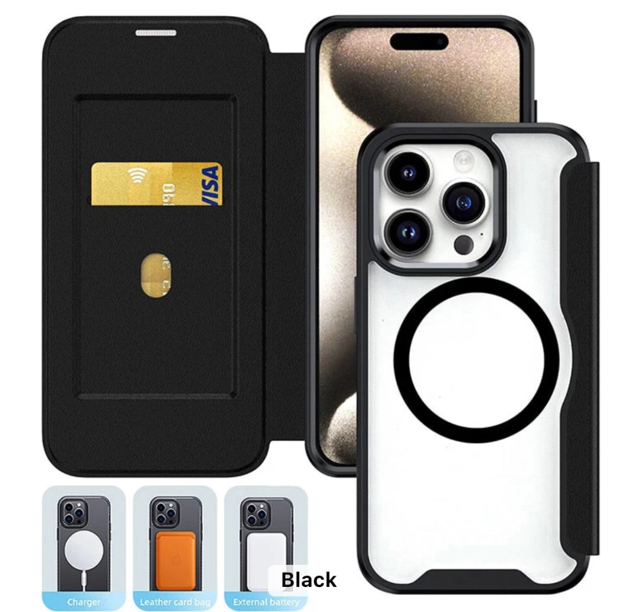 XUNIJA MAGNETIC LEATHER FLIP CASE FOR IPHONE 16 PLUS BLACK